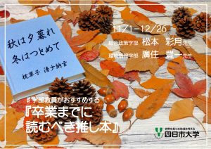 11月より総合政策学部の松本彩月先生と環境情報学部の廣住豊一先生がおすすめする「推し本」が展示されます。